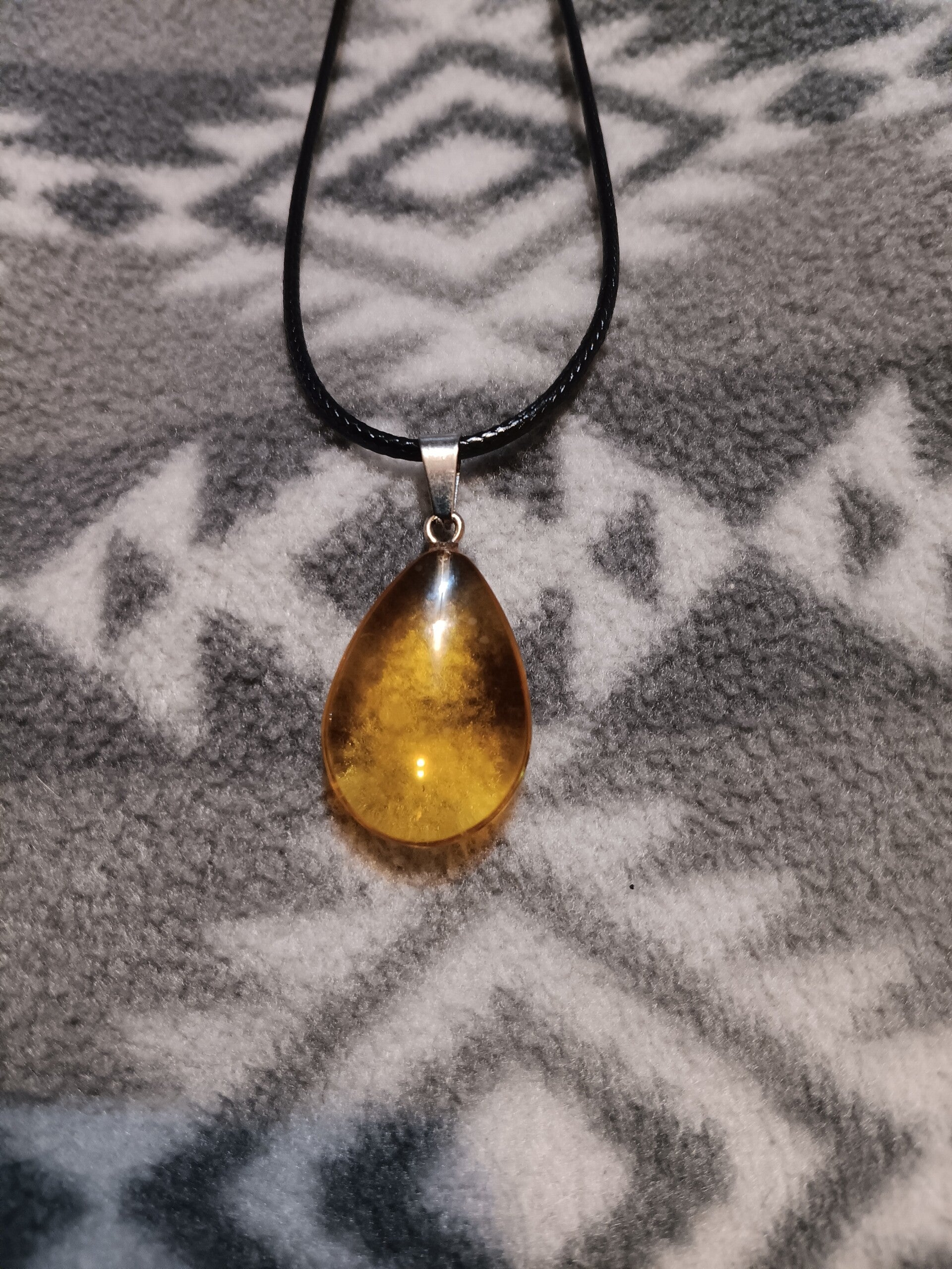 teardrop-shaped amber pendant